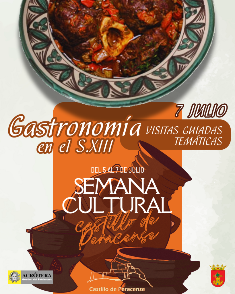 Domingo 7 de julio: las visitas guiadas, además del contexto histórico-artístico habitual, girarán en torno a la gastronomía del S.XIII de la zona, y especialmente la que podría haberse dado en el castillo.